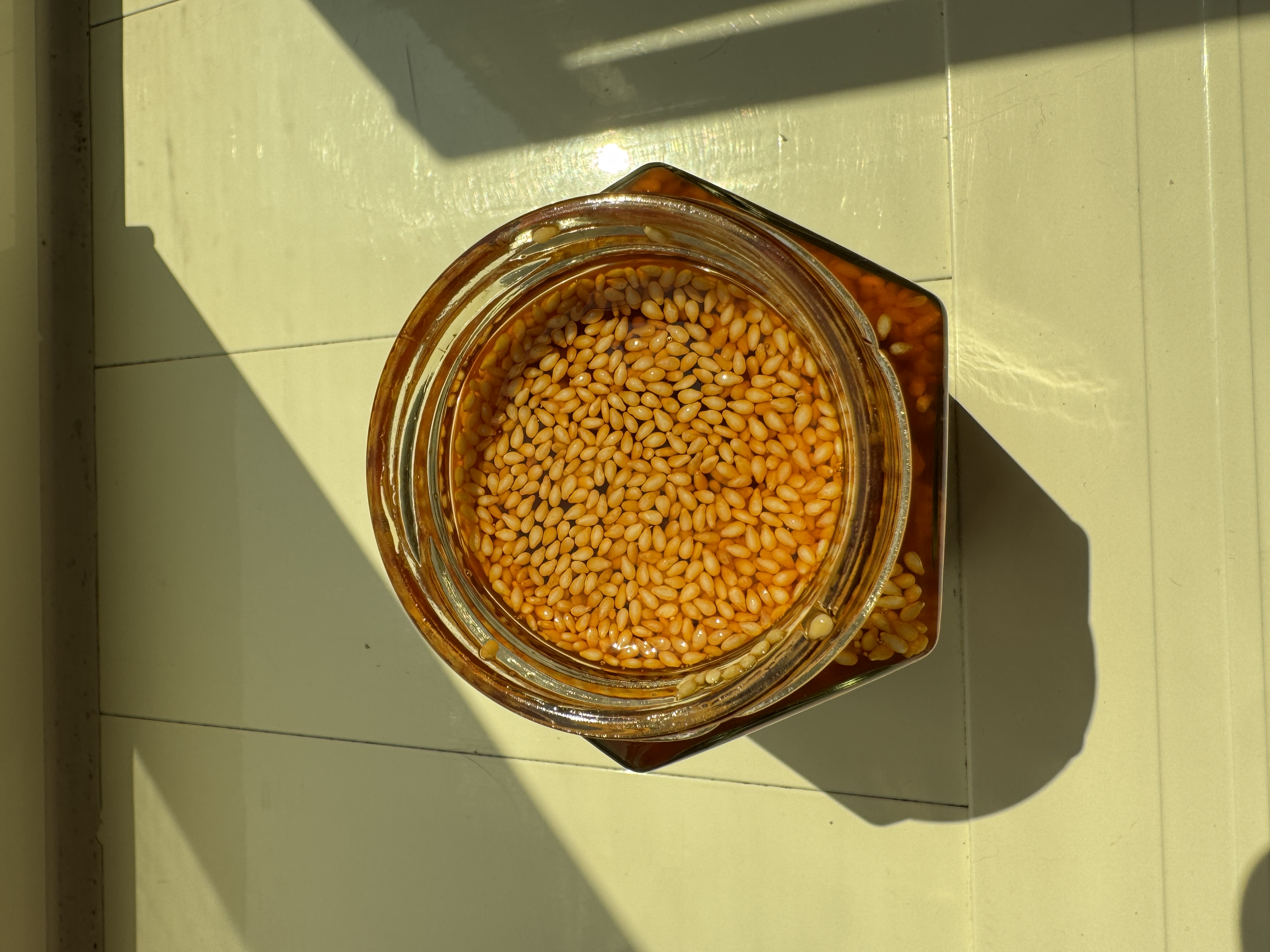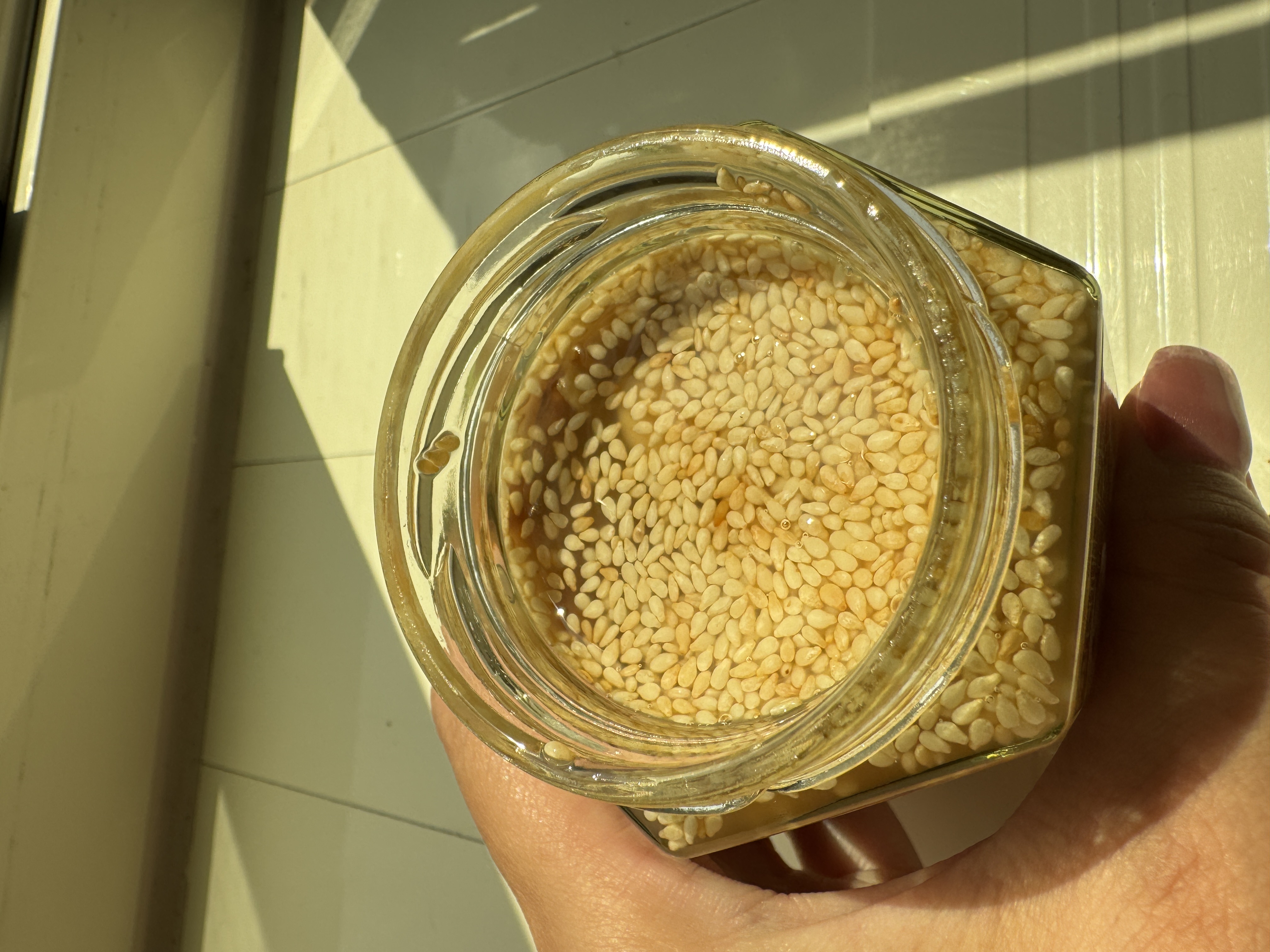 有一次我烤小雞腿,平常就只是單純加鹽、黑胡椒,但那天我多刷了一層胡麻果油,整個香氣爆棚。