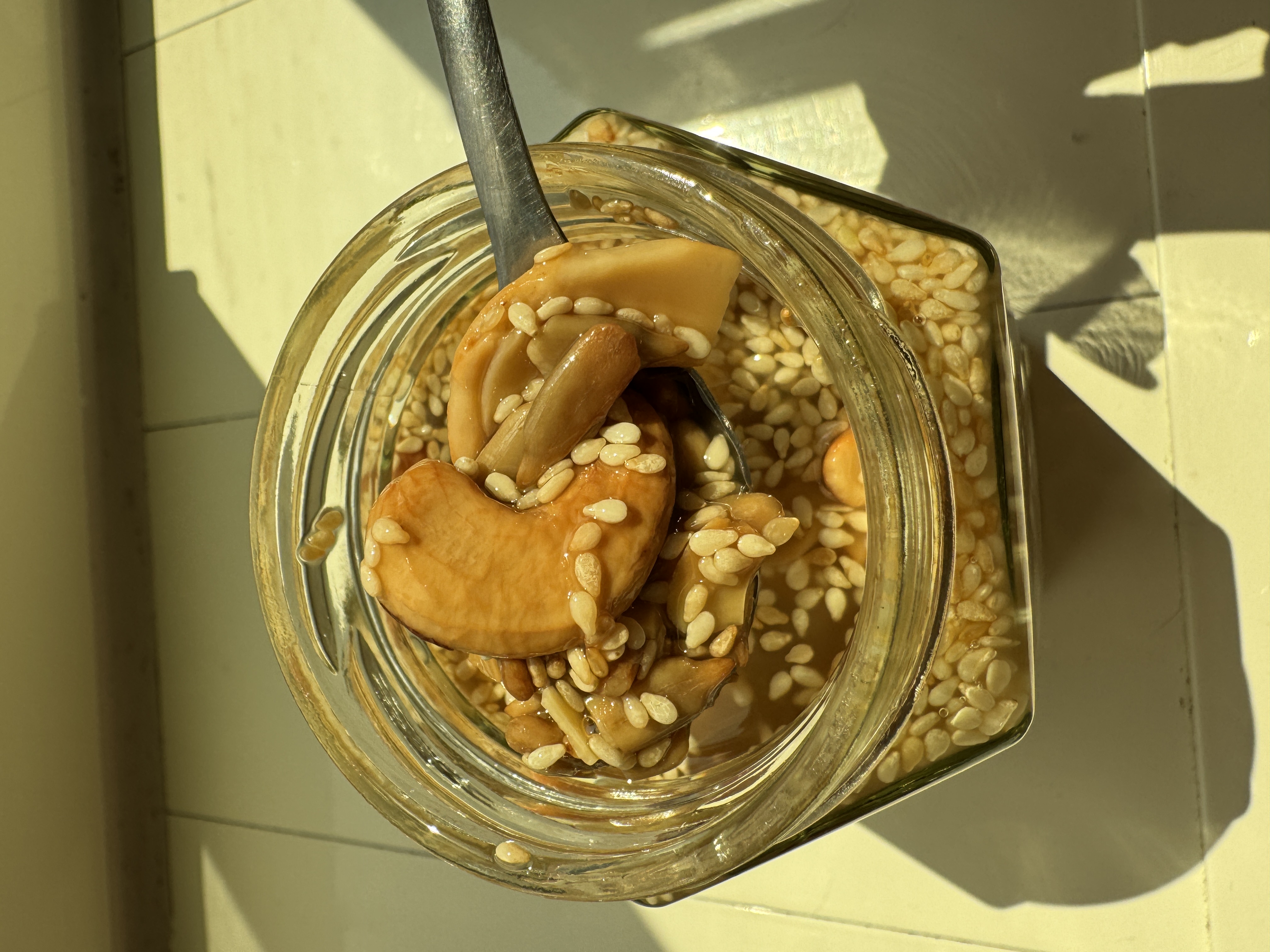 再來是五仁胡麻果油-280元(250g),這瓶走的是溫柔療癒的路線。裡面加入了日本胡麻,胡麻的濃郁香氣結合堅果,味道厚實卻不膩口。